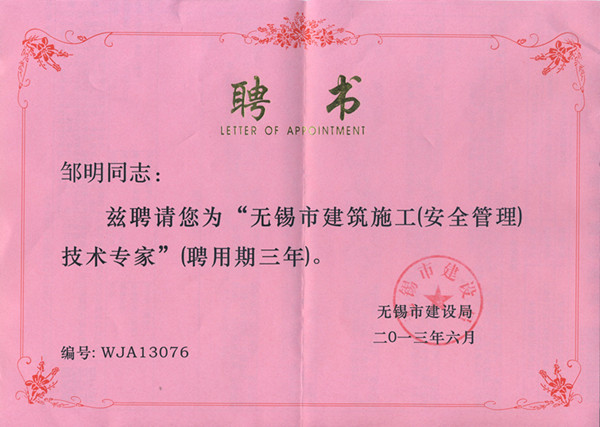 | 市建設局聘任無錫市建筑施工技術專家 | ||
