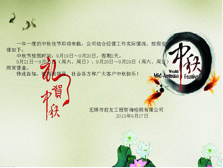 關于中秋節放假的公告