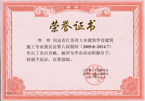 7月23日~25日,江蘇省土木建筑學會建筑施工專業(yè)委員會第九屆一次會議暨2013年度建筑施工學術(shù)交流會在常州召開。 會議組織了學術(shù)交流,主題圍繞建筑結(jié)構(gòu)施工新技術(shù)、地基基礎(chǔ)施工新技術(shù)、模板腳手架施工新技術(shù)、綠色環(huán)保及節(jié)能新技術(shù)、裝飾裝修新技術(shù)、現(xiàn)代施工管理及質(zhì)量安全監(jiān)控等。 期間,召開了江蘇省土木建筑學會建筑施工專業(yè)委員會第八屆六次會議、第九屆一次會議,總結(jié)交流各市學會工作、評選學會活動積極分子、布置2014年省建筑施工專業(yè)委員會工作;完成了省土木建筑學會施工專業(yè)委員會換屆,組聘新一屆委員會。刁愛國教授級高工續(xù)聘為第九屆建筑施工專業(yè)委員會主任委員,公司總經(jīng)理鄒明研究員級高工續(xù)聘為第九屆建筑施工專業(yè)委員會委員,并被評為學會活動積極分子。 ![]() ![]() ![]() 2014.7.25 | ||