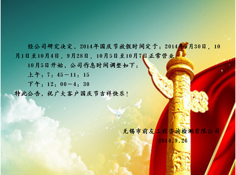 | 關(guān)于國(guó)慶節(jié)放假及節(jié)后營(yíng)業(yè)時(shí)間調(diào)整的公告 | ||