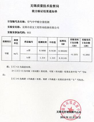 | 年末報(bào)喜:公司順利通過市空氣中甲醛含量檢測(cè)能力驗(yàn)證 | ||