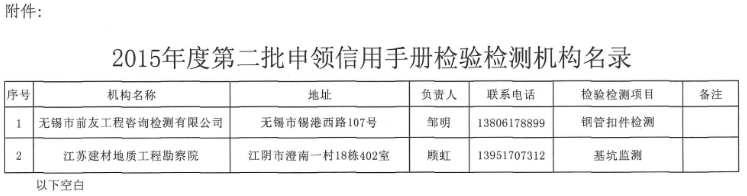 | 公司已獲準(zhǔn)無錫市建設(shè)工程安全類檢測機構(gòu)信用備案 | ||