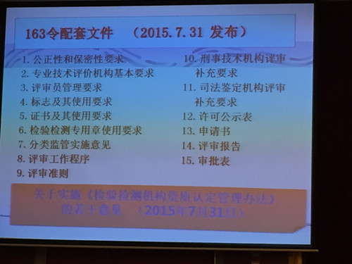 為貫徹落實認監委《關于實施<檢驗檢測資質認定管理辦法>的若干意見》文件精神,規范檢驗檢測機構資質認定工作,9月17日無錫市質量技術監督局開展檢驗檢測機構資質認定管理辦法等相關法律法規宣貫培訓。各市(縣)、區市場監督局認證認可監管人員和全市各行業172家資質認定獲證檢驗檢測機構負責人、質量負責人參加了培訓,公司總經理鄒明、質量負責人朱文英全程參加了活動。 宣貫培訓由市質監局王武處長主持,天津市疾控中心郝琳高級工程師主講。內容包括1)163號令要點解讀;2)新評審準則變化點;3)過渡期的做法;4)專項監督關注點。 此次宣貫培訓,主管部門重視,主講老師備課充分、信息量大,參會人員認真聽講,收獲頗豐,活動取得了成功。