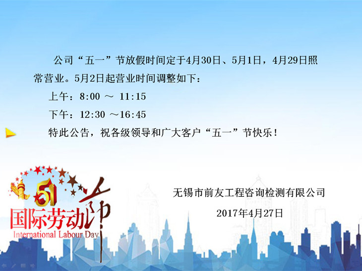 | 關于“五一”節(jié)放假及節(jié)后營業(yè)時間調整的公告 | ||