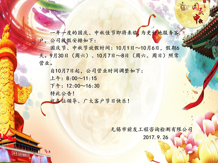 | 關(guān)于國慶、中秋節(jié)放假及節(jié)后營業(yè)時間調(diào)整的公告 | ||