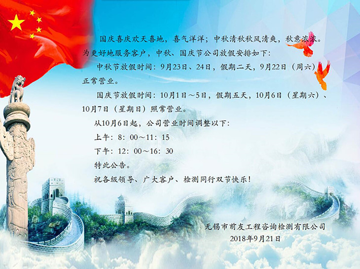 | 關于中秋、國慶節放假及節后營業時間調整的公告 | ||
