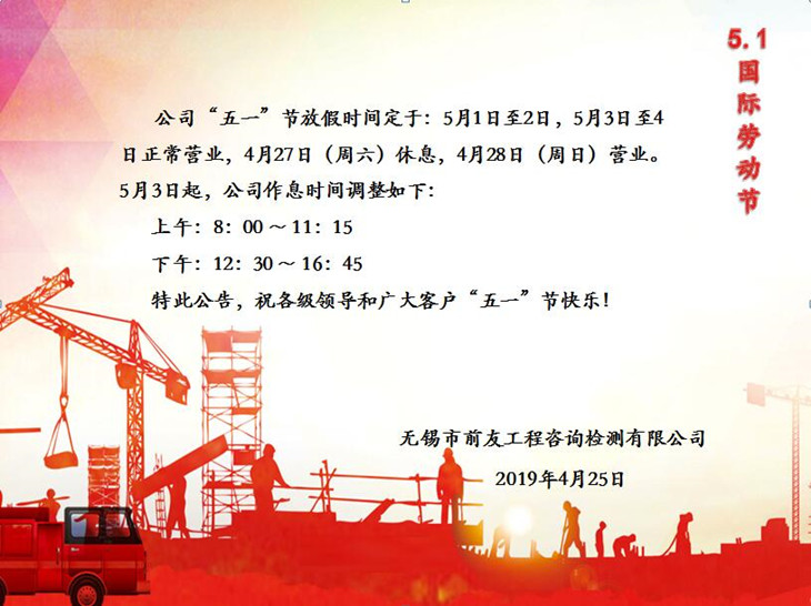 | 關于“五一”節放假及節后營業時間調整的公告 | ||