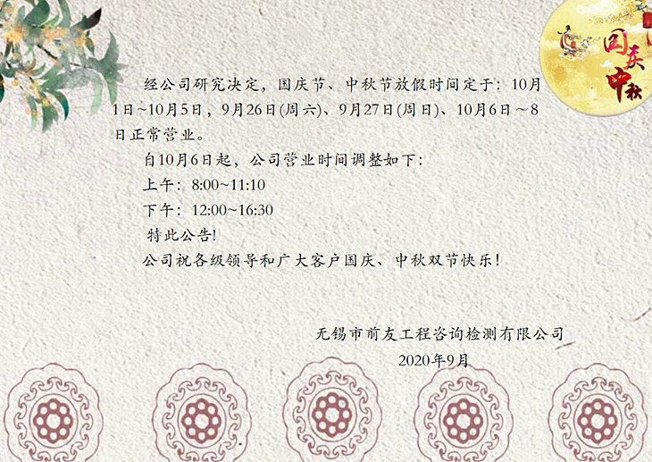 | 關于國慶、中秋放假及節后營業時間調整的公告 | ||