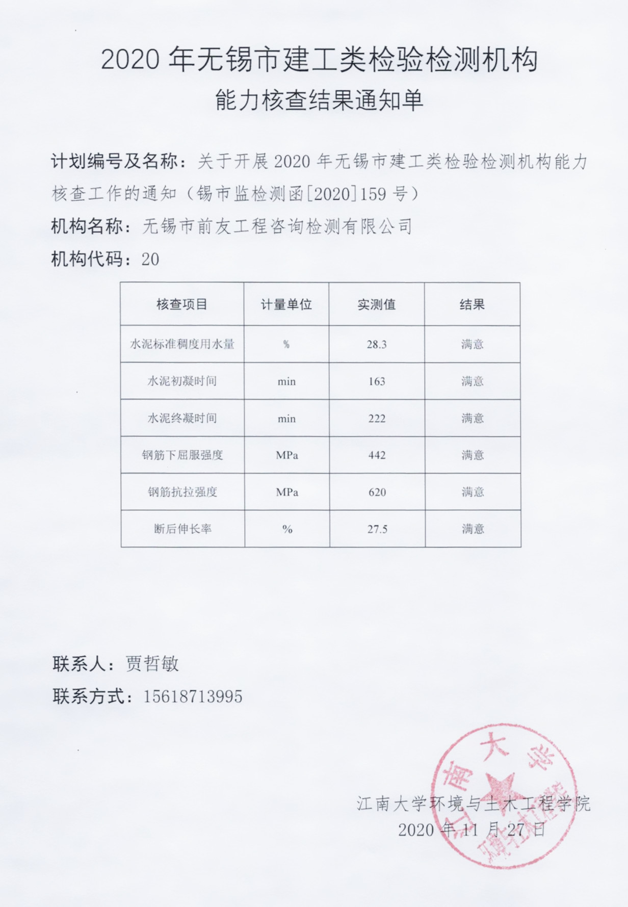 | 2020年無錫市建工類檢測機構水泥鋼筋能力核查公司全獲滿意 | ||