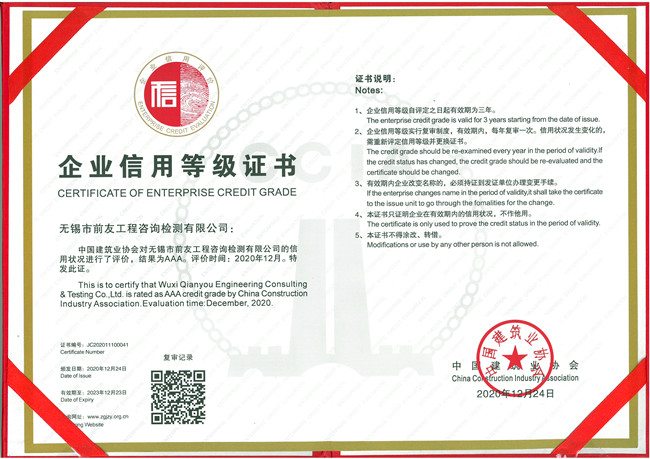 近日,公司收到了中國建筑業協會頒發的“關于公布2020年度建筑業AAA級信用企業(檢測機構)的通知”和建筑業AAA級信用企業證書。 為加快推進社會信用體系建設,促進企業誠信經營,中國建筑業協會質量管理與監督檢測分會,根據“關于開展2020年度建筑業AAA級信用企業(檢測機構)評價推薦工作的通知”要求,本著公開、公平、公正的原則,通過檢測機構自愿申請、各省市相關單位推薦,在相關網站上排查復核,專家綜合評價及網上公示,確定北京環安工程檢測有限責任公司等129家檢測機構為2020年度建筑業AAA級信用企業(檢測機構),現已發文公布。 誠信企業的建設永遠在路上。無錫市前友工程咨詢檢測有限公司將以此作為加快公司高質量發展的新動力,進一步加強信用體系建設,練實內功,優化服務,積極履行社會責任,為促進行業持續健康發展做出新的貢獻。