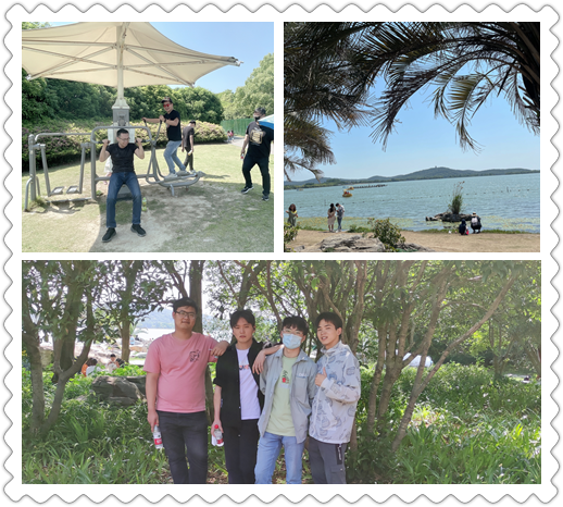 五月的城,山清水秀,驕陽似火。蠡湖岸邊的無錫小三亞迎來了一批不懼烈日,勇于挑戰(zhàn)的前友青年員工。天藍水碧,棕樹錯落,走上奇石小徑便開始了我們今天的環(huán)島挑戰(zhàn)。蔥翠碧綠的黨史長廊,紅旗招展,一幅幅宣傳圖片我們講述著先輩們的英勇事跡。人在山水畫景中一路向前百米高噴好似感受到了大家的疲憊,噴泉高噴樂曲奏響,似為大家吶喊助威。不知過了多久,終于到達終點,大家紛紛席地而坐