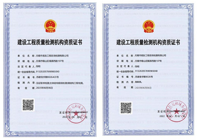 近日,江蘇省住房和城鄉(xiāng)建設(shè)廳網(wǎng)站公布了工程檢測企業(yè)資質(zhì)核準結(jié)果的公告。無錫市前友工程咨詢檢測有限公司獲準資質(zhì)延續(xù),已取得嶄新的《建設(shè)工程質(zhì)量檢測機構(gòu)資質(zhì)證書》。據(jù)此,公司資質(zhì)延續(xù)工作已順利完成。 公司成立十六年來,資質(zhì)能力不斷提高。公司的業(yè)務(wù)服務(wù)范圍已拓展到建筑工程材料檢測、工程實體質(zhì)量檢測、工程安全類構(gòu)件檢測、裝配式結(jié)構(gòu)檢測、工程測量、房屋安全鑒定。公司成長為國家高新技術(shù)企業(yè),并獲中國建筑業(yè)協(xié)會AAA級信用企業(yè)(檢測機構(gòu))。 檢測資質(zhì)的順利延續(xù),為公司高品質(zhì)發(fā)展奠定了基礎(chǔ)。公司將不忘初心,虔誠為政府、客戶和社會提供更優(yōu)質(zhì)、更全面的咨詢檢測服務(wù)。