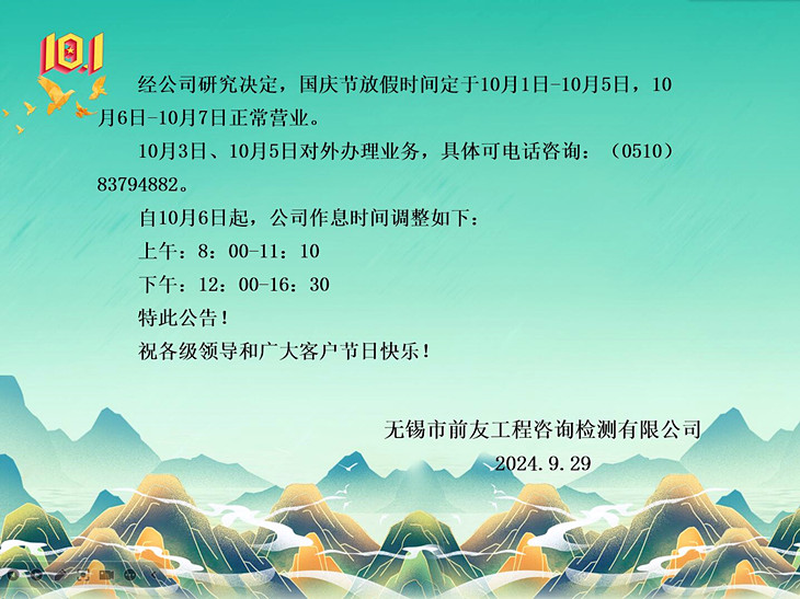 | 國慶節(jié)放假及節(jié)后營業(yè)時間調(diào)整的公告 | ||