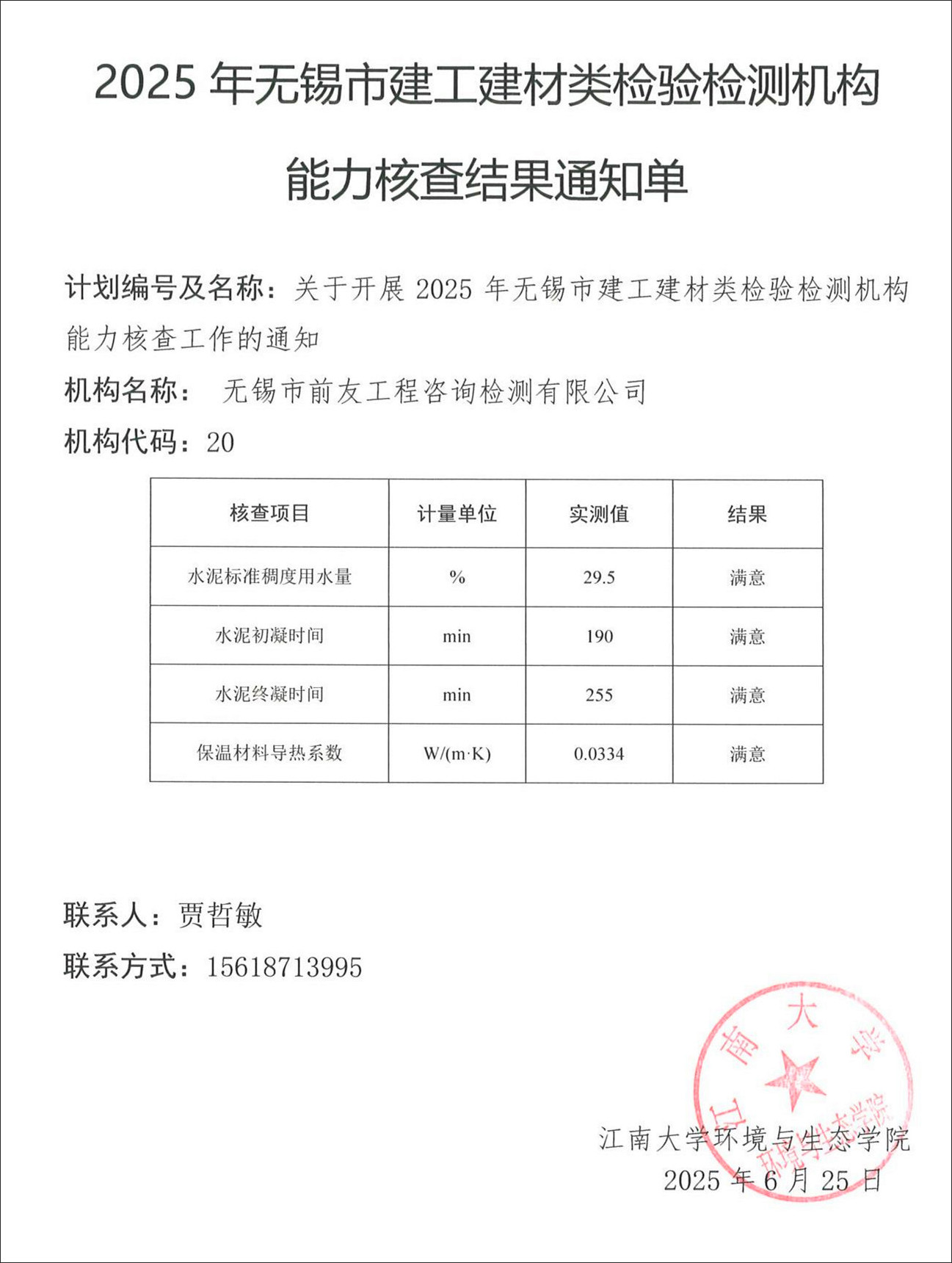 | 2025年無錫市建工建材類檢驗檢測機(jī)構(gòu)能力核查公司全獲滿意 | ||